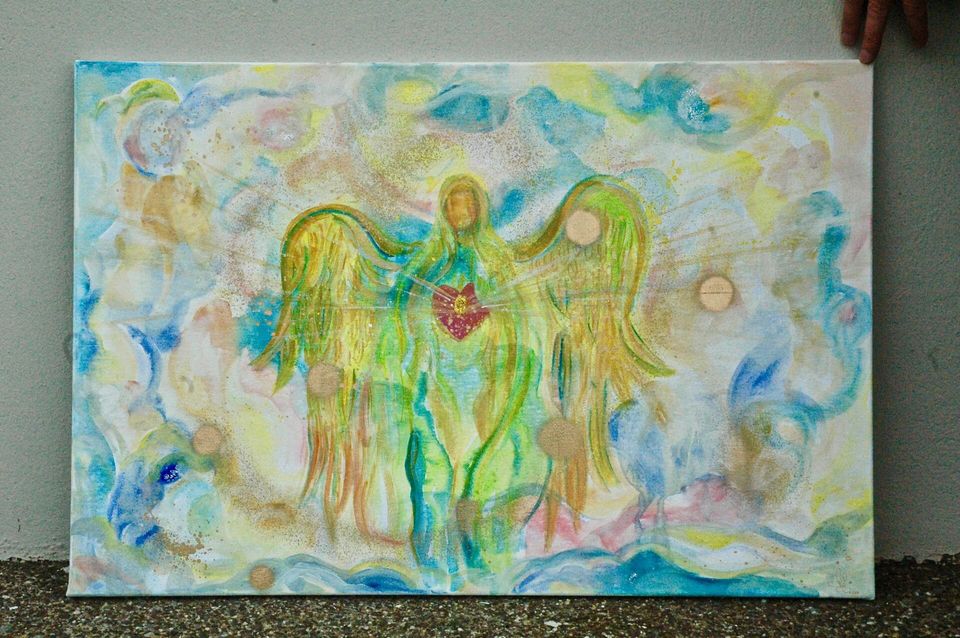 Since I was 16 years old I have already been able to paint many guardian angels for my customers and yet every guardian angel painting delights me again, because every guardian angel painting is unique and also the encounter with the different guardian angels is always different and very touching at the same time. There were moments when only tears flowed, when the angels let so much love and strength flow into the guardian angel painting and because also the personal messages of the guardian angels had so much love and acceptance. For me the guardian angel paintings are something very special and so I have been painting these wonderful energy paintings for my customers for over 15 years now and enjoy the heavenly work with the angels again and again.