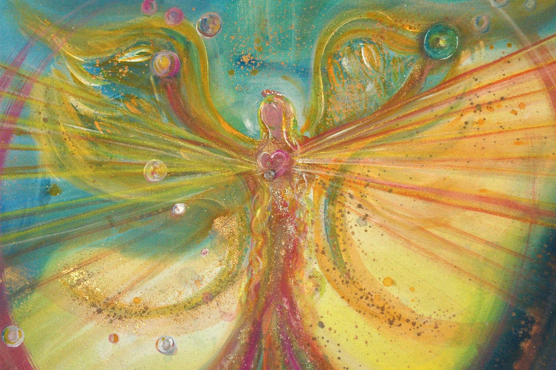 The guardian angel paintings are painted in direct contact with your guardian angel, your guardian angel will guide me exactly to let the matching colors, brush strokes, color sounds and artistic elements flow into your guardian angel painting. Your guardian angel is involved in the painting process from the very beginning and lets all the love and power flow into the painting. Your guardian angel will also send me a personal message for you that will help you in the current situation. But the message can also contain information that only yourself can understand, because your guardian angel knows you best and has been with you since your birth and sometimes even earlier.